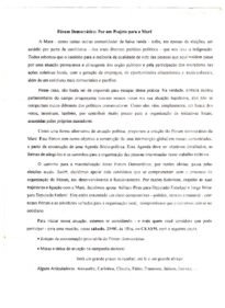 Convite para evento que tinha como objetivo a organização política de moradores no Fórum intitulado "Fórum Democrático: Por um projeto para a Maré". Há um convite para um evento específico que pretende: eleger a coordenação provisória deste Fórum e o estabelecimento de metas e tática de atuação na campanha eleitoral. Segundo os organizadores, esse Fórum tem como objetivo a construção de uma intervenção global em nossas comunidades, a partir da construção de uma Agenda Sócio-política. Essa Agenda deve ter objetivos detalhados, as formas de atingi-los e os caminhos para a organização das pessoas interessadas nesse trabalho coletivo.