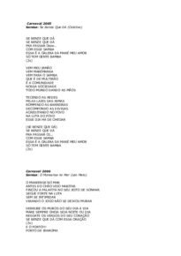 Coleção Registros Textuais Item Sambas do Bloco Se Benze Que Dá Documentos Sambas do Bloco Se Benze Que Dá Baixar Metadados Miniatura TítuloSambas do Bloco Se Benze Que DáTipo documentalCanção > Samba-enredoPalavras-chaveBloco Se Benze Que dá | Carnaval | Samba-enredoProjeto vinculado2007 - 2010: Música, Memória e Sociabilidade na Maré; Um estudo etnomusicológico colaborativo em uma comunidade do Rio de Janeiro.DescriçãoDocumento que relaciona as letras das canções que foram escritas para o bloco Se Benze Que Dá, no período de 2005 a 2008. Constam em trocas de e-mail dos participantes.ProdutorGrupo MusiculturaIdiomaPT-BRData26 de novembro de 2008Elementos SuporteDigital FormatoA4 GêneroTextual CoberturaMaré, Rio de Janeiro - RJRelacionamento Desfile do Se Benze Que dá | Bloco Se Benze Que Dá Desfile Continuar navegando Anotação de campo Convite para Fórum Democrático: por um projeto para a Maré Voltar para a lista de itens